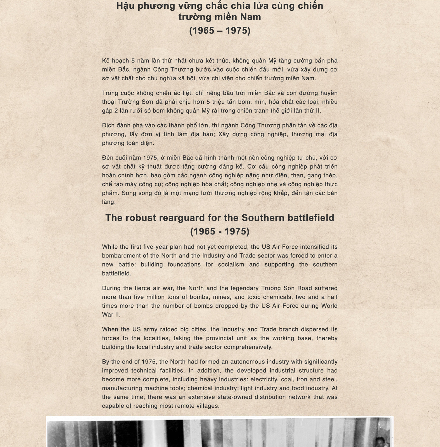 Thứ tư, 17/09/2025 | 23:45 Hậu phương vững chắc chia lửa cùng chiến trường miền Nam (1965 – 1975) Hậu phương vững chắc chia lửa cùng chiến trường miền Nam (1965 – 1975) Tags: Lịch sử hình thành bộ công thương