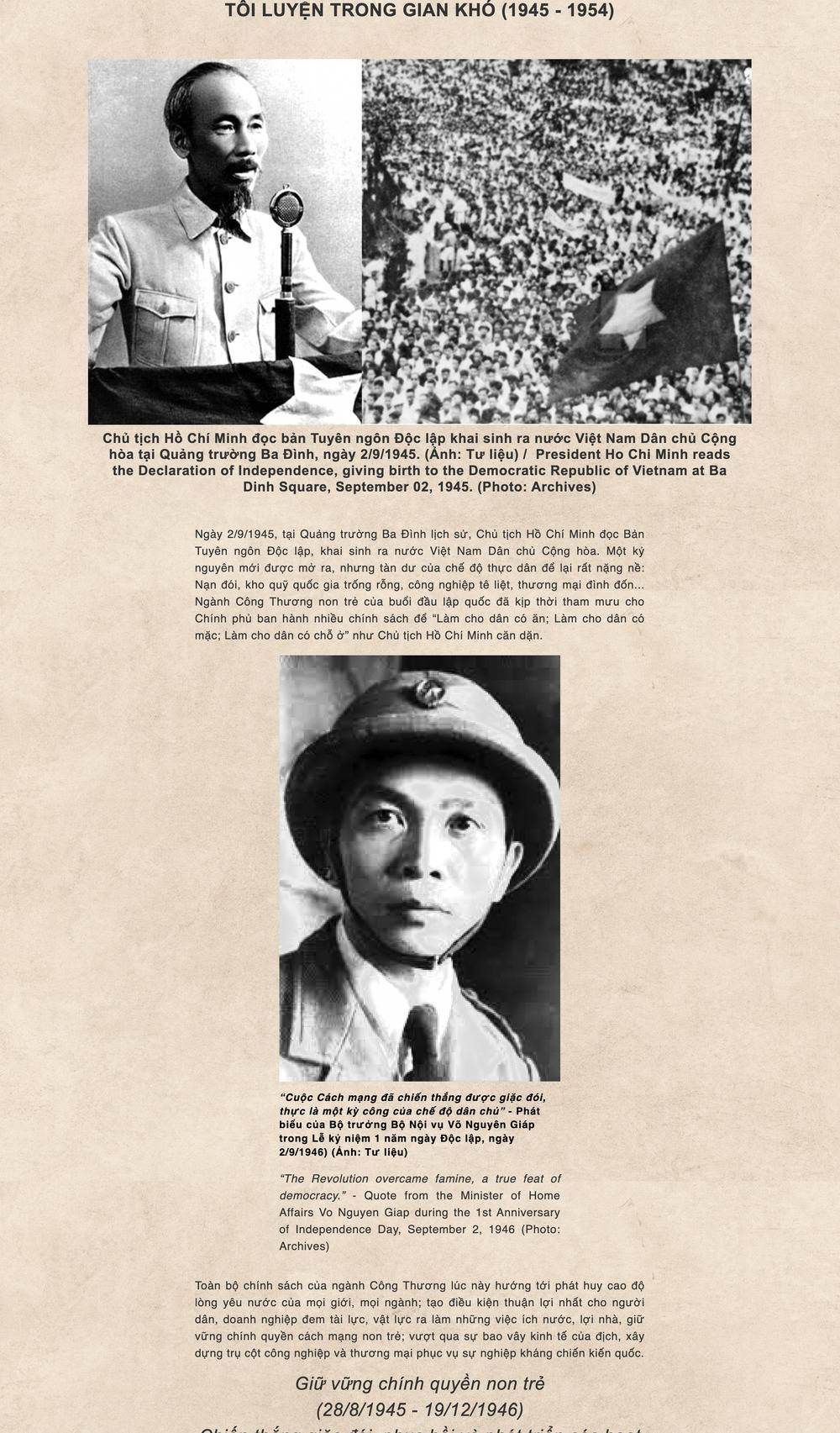 Thứ tư, 17/09/2025 | 23:36 Tôi luyện trong gian khó (1945 - 1954) Tôi luyện trong gian khó (1945 - 1954) Tags: Lịch sử hình thành bộ công thương